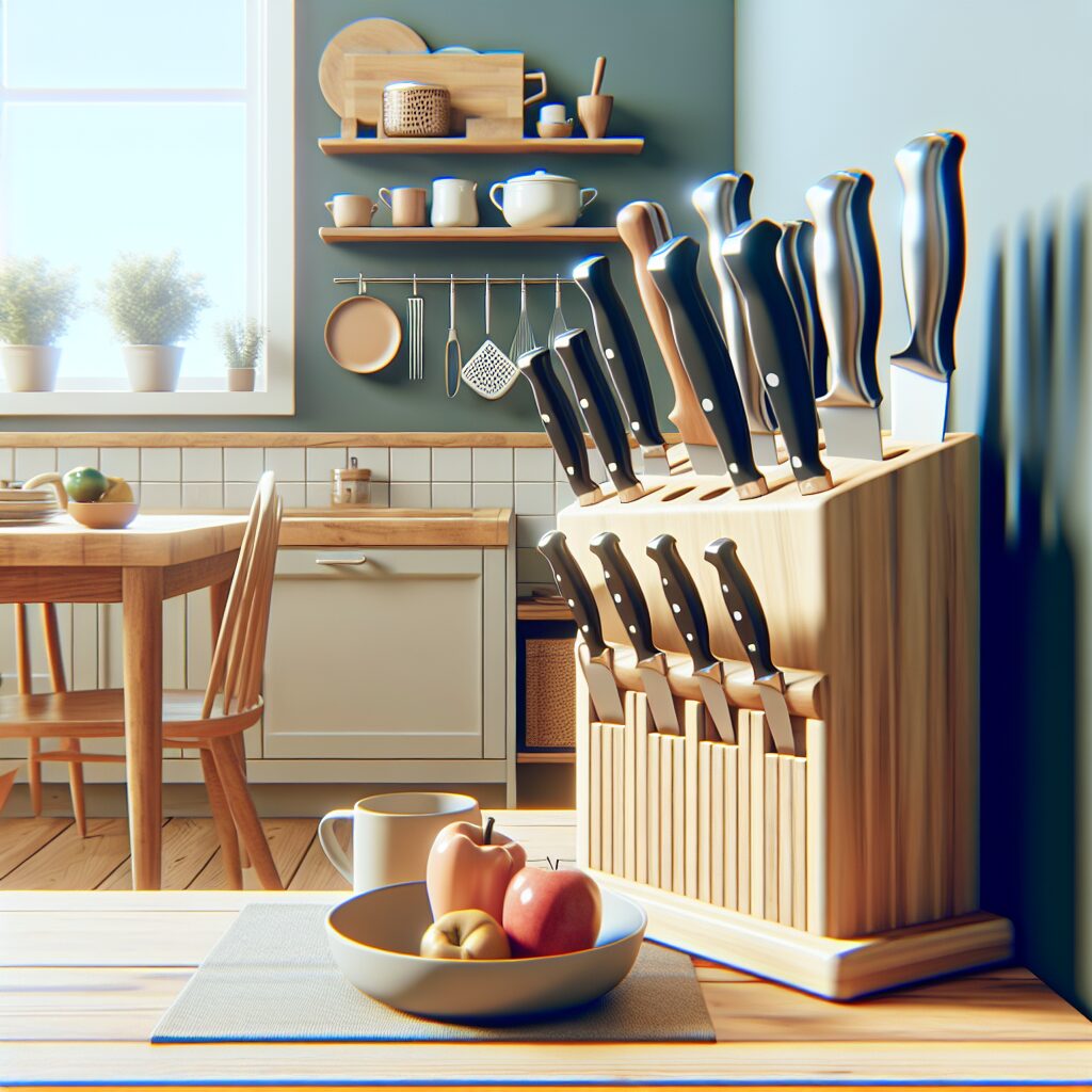 - Til små køkkener er kompakte knivblokke eller vægmonterede magnetiske holdere pladsbesparende og praktiske.